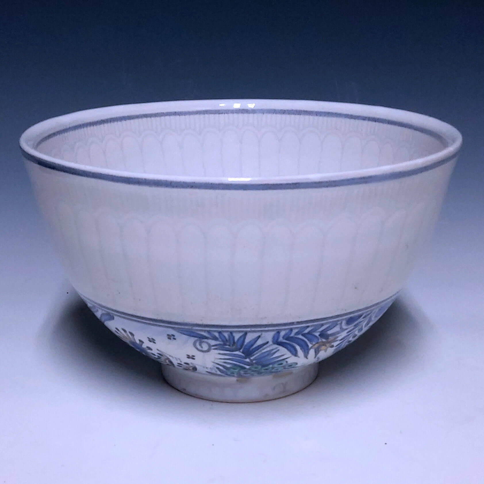 Thrown bowl with engraved bianco sopra bianco design and hand painted pattern.